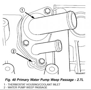 Water Pump Leak 2 7l Weep Hole Where Is The Weep Hole For